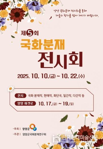 한국현대미술신문 원진 기자 | 양양군 국화분재연구회(회장 윤종욱)는 오는 10일부터 22일까지 13일간 양양군농업기술센터에서 ’제5회 국화분재 전시회‘를 개최한다.