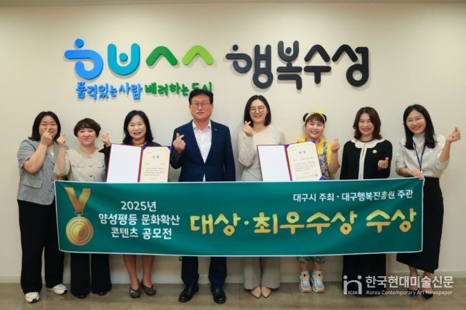 한국현대미술신문 정소영 기자 | 대구 수성여성클럽은 성평등콘텐츠 제작교실 수료생들이 '2025 양성평등 문화확산 콘텐츠 공모전'에서 대상과 최우수상을 동시에 수상했다고 29일 밝혔다.