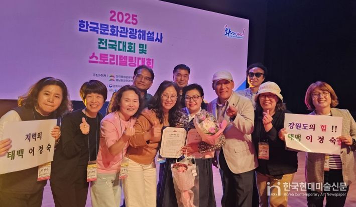 한국현대미술신문 원진 기자 | 태백시는 시 문화관광해설사 이정숙 씨가 지난 9월 29일부터 30일까지 충남 부여에서 열린 '2025년 한국문화관광해설사 스토리텔링 경연대회'에서 최고상인 금상을 수상했다고 밝혔다.