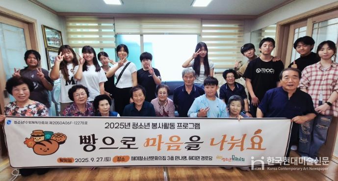 한국현대미술신문 신정은 기자 | 해미청소년문화의집은 지난 27일 청소년들이 직접 만든 디저트를 지역 어르신께 전달하는 재능기부 봉사활동 프로그램‘빵으로 마음을 나눠요’를 운영했다고 밝혔다.