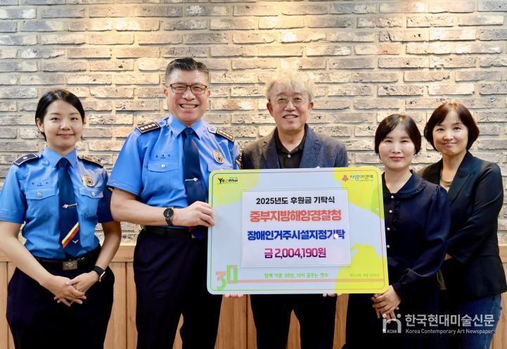 한국현대미술신문 박재남 기자 | 중부지방해양경찰청은 지난 1일 연수구청에서 다가오는 추석 명절 지역사회 나눔 실천의 일환으로 중증장애인 거주시설 ‘밝은 마음’에 기부금을 전달했다고 밝혔다.