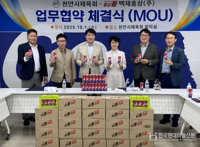 한국현대미술신문 신정은 기자 | 천안시체육회는 지난 1일 백제홍삼㈜와 체육인 건강증진을 위해 업무협약을 체결했다고 밝혔다.