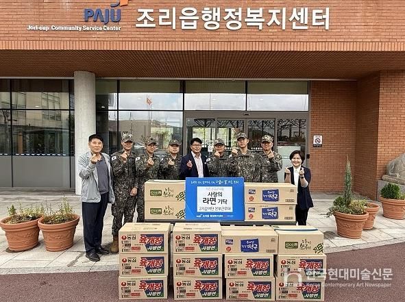 한국현대미술신문 배윤섭 기자 | 파주시 조리읍은 지난 29일, 제2기갑여단 본부근무대가 추석을 맞아 지역 내 어려운 이웃을 돕기 위해 컵라면 등 즉석식품 16상자를 기탁했다고 밝혔다.
