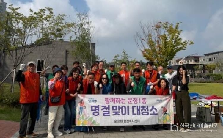 한국현대미술신문 배윤섭 기자 | 파주시 운정1동은 지난 1일 파주운정동우체국 인근 코스모스 꽃밭 및 주차장에서 관내 지역단체와 함께 ‘2025년 추석맞이 대청소’를 실시했다.