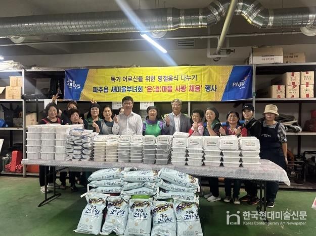 한국현대미술신문 배윤섭 기자 | 파주시 파주읍 새마을부녀회는 민족 최대의 명절인 추석을 맞아 지난 1일 관내 독거노인을 위한 ‘온(溫)마음 사랑채움’ 행사를 진행했다.