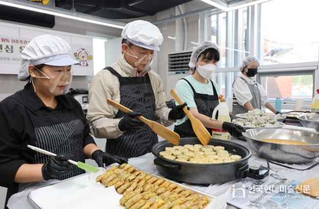 한국현대미술신문 박재남 기자 | 김찬진 동구청장은 지난 1일 금창동 세대공감센터에서 자원봉사자 18명과 함께 추석맞이 ‘이심전심 온기나눔’ 활동을 진행했다.
