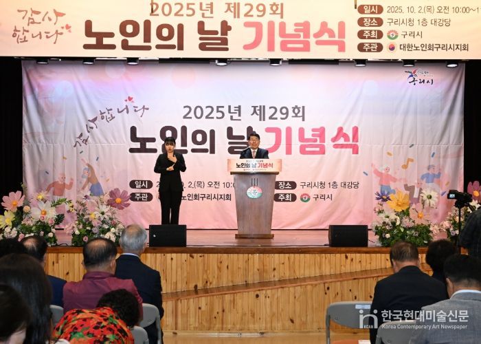 한국현대미술신문 배윤섭 기자 | 구리시는 노인의 날을 맞아 10월 2일 오전 10시 구리시청 1층 대강당에서 제29회 노인의 날 기념식을 열고 지역 어르신들과 뜻깊은 시간을 가졌다.