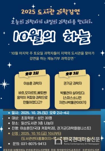한국현대미술신문 배윤섭 기자 | 고양특례시 일산도서관에서는 과학자들의 재능기부 도서관 과학 강연프로그램 ‘10월의 하늘’을 운영한다.