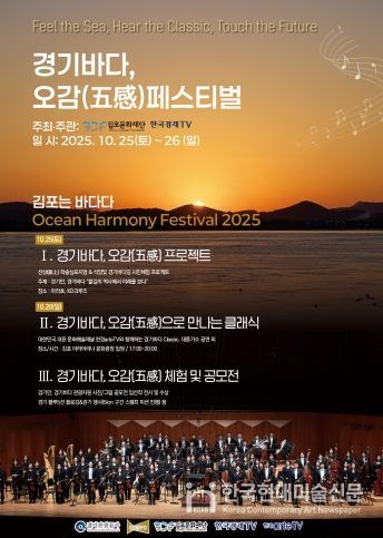 한국현대미술신문 배윤섭 기자 | (재)김포문화재단은 오는 10월 25일부터 26일까지 양일간 김포 아라마리나 문화광장에서 'Ocean Harmony Festival 2025, 경기바다 오감(五感) 페스티벌'을 개최한다고 밝혔다. 이번 행사는 한국경제TV 및 한경arteTV가 주관하고 경기관광공사가 후원한다.