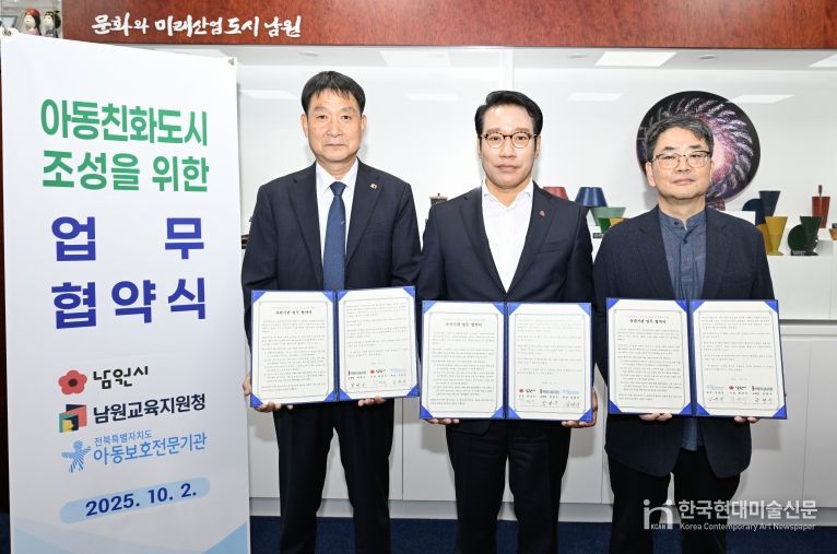 한국현대미술신문 기자 | 남원시는 지난 2일 남원교육지원청, 전북동부아동보호전문기관과 함께 아동친화도시 조성 및 아동 권리 증진을 위한 업무협약식을 체결했다.