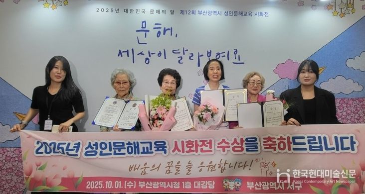 한국현대미술신문 정소영 기자 | 부산 서구는 지난 1일 열린‘2025년 제12회 부산광역시 성인문해교육 시화전’에서 관내 학습자 5명이 최우수상과 특별상 등을 수상했다고 밝혔다.