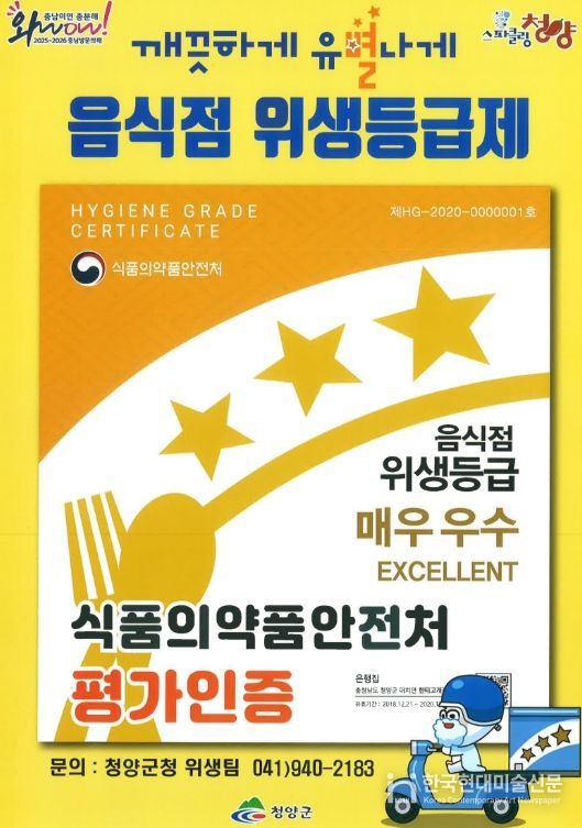 한국현대미술신문 신정은 기자 | 청양군은 철저한 위생 관리로 안심하고 이용할 수 있는 음식점을 확대하기 위해 음식점 위생등급제 지정 신청업소를 연중 모집한다고 밝혔다.