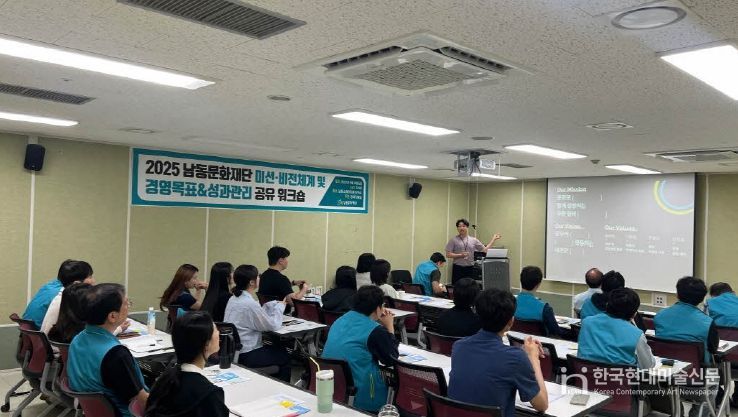 한국현대미술신문 박재남 기자 | 인천 남동문화재단은 남동소래아트홀에서 재단 직원들이 참석한 가운데 ‘2025 新 미션·비전 체계 및 경영목표․성과관리 공유 워크숍’을 했다고 13일 전했다.