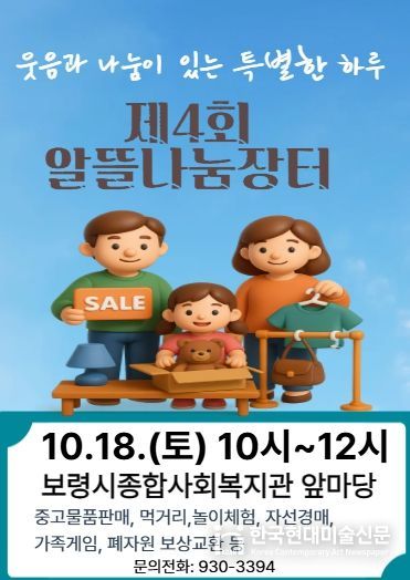 한국현대미술신문 신정은 기자 | 보령시종합사회복지관은 오는 10월 18일 오전 10시부터 12시까지 복지관 앞마당에서 ‘제4회 알뜰나눔장터’를 개최한다.