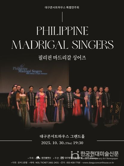 한국현대미술신문 정소영 기자 | 대구문화예술진흥원 대구콘서트하우스는 세계적 합창단체를 초청해 유네스코 음악창의도시 대구의 위상을 알리고, 시민들에게 수준 높은 합창 무대를 선보이고자 ‘필리핀 마드리갈 싱어즈’ 공연을 준비했다.