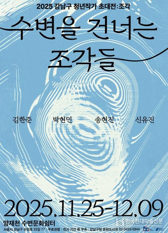 이번 전시는 청년 예술가들이 대중과 소통할 기회를 넓히고, 조형예술의 실험성과 예술적 다양성을 지역사회와 공유하고자 기획됐다. 2025 강남구 신진작가 지원전에서 최우수상을 수상한 김한준 작가를 비롯해 박현민, 송현진, 신유진 등 4명의 젊은 조각가들이 ‘수변(水邊)’이라는 주제를 통해 흐름과 변화, 머무름과 순환이 공존하는 경계의 미학을 작품으로 옮겼다.