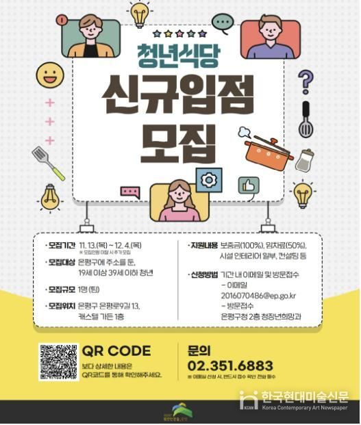 한국현대미술신문 배건 기자 | 서울 은평구는 내달 4일까지 ‘청년식당’에 입점할 청년을 모집한다고 밝혔다.