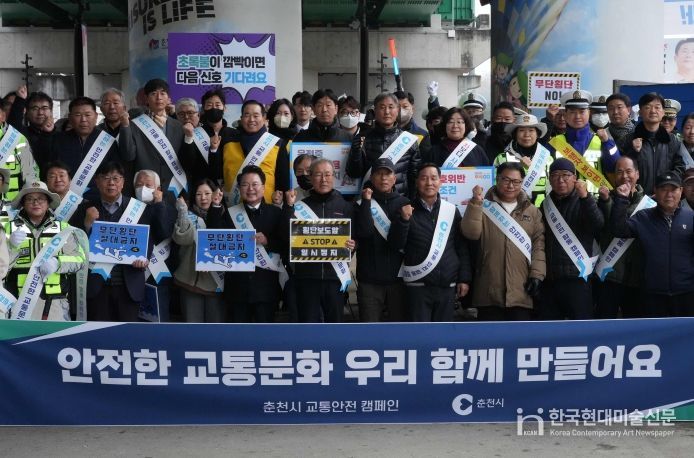 춘천시(시장 육동한)는 26일 출근 시간대 온의교차로에서 시민들과 함께 교통안전 캠페인을 펼쳤다. 이날 캠페인에는 육동한 시장과 춘천경찰서, 춘천시민버스, 자율방범연합대, 개인택시조합, 법인택시협의회, 화물자동차운송협회, 한국교통안전공단, 한국도로교통공단, 모범운전자연합회원 등 약 80명이 참여했다. 이들은 ‘횡단보도 일단정지’, ‘보행자 무단횡단 금지’를 알리는 피켓과 안내문을 활용해 시민들에게 교통안전 메시지를 전달했다.