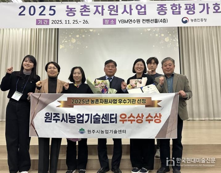 한국현대미술신문 원진 기자 | 원주시농업기술센터는 지난 25일 열린 농촌진흥청 주관 ‘2025년 농촌자원사업 성과확산 경진대회’에서 우수상을 수상했다.