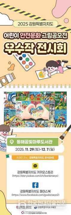 한국현대미술신문 원진 기자 | 동해꿈빛마루도서관은 강원특별자치도가 주관한 ‘2025년 어린이 안전문화 그림 공모전’에서 입상한 우수작품 전시회를 개최한다.