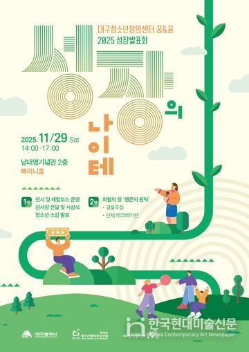 한국현대미술신문 정소영 기자 | 대구광역시는 대구청소년창의센터 꿈&꿈(센터장 김태완)이 11월 29일 오후 2시, 남대영기념관에서 청소년들의 한 해 동안의 성장과 활동 성과를 공유하는 ‘2025년 성장발표회-성장의 나이테’를 개최한다고 밝혔다.