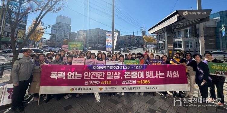 한국현대미술신문 정소영 기자 | 대구 서구는 지난 11월 28일 신평리네거리에서 여성 폭력 예방과 안전한 지역사회 조성을 위해 민관 합동 캠페인을 벌였다고 밝혔다.