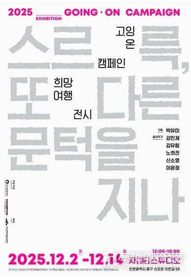 한국현대미술신문 박재남 기자 | (재)인천문화재단은 암 경험자와 지역 예술가가 함께한 전시 '2025 고잉 온 캠페인 희망여행' ‘스르륵, 또다른 문턱을 지나’를 오는 12월 2일부터 14일까지 인천 중구 차(茶)스튜디오(인천 중구 신포로15번길 58)에서 운영한다고 밝혔다.