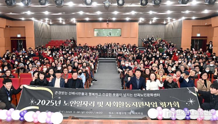 한국현대미술신문 박재남 기자 | 부평구 산곡노인문화센터는 지난 28일 10시와 14시 구청 대회의실에서 ‘감사(감사한 2025년 사랑과 열정이 가득한 참여자 덕분입니다)’를 주제로 사업평가회를 실시했다.