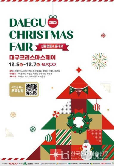 한국현대미술신문 정소영 기자 | 대구 북구청은 오는 2025년 12월 5일부터 7일까지 3일간 엑스코 서관 제1전시장에서 열리는 ‘2025 대구 크리스마스페어’에 참여해 관광홍보부스를 운영하여 북구가 가진 다양한 관광매력을 방문객들에게 선보일 계획이다.