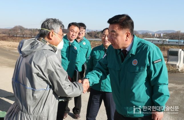 한국현대미술신문 신정은 기자 | 이범석 청주시장은 4일 고병원성 조류인플루엔자(AI) 방역 현장을 방문해 조치사항과 대응 매뉴얼을 점검하고 현장 직원들에게 철저한 방역 추진을 당부했다.