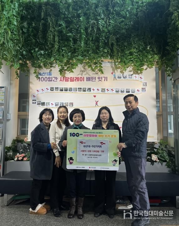 한국현대미술신문 배윤섭 기자 | 의정부시 송산1동주민센터는 12월 11일 송산1동 주민자치회가 성금 120만 원을 기탁하며 ‘100일간 사랑릴레이 배턴 잇기’에 동참했다고 밝혔다.
