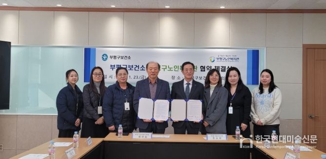 한국현대미술신문 박재남 기자 | 부평구노인복지관과 부평구보건소는 1월 23일, 보건소 소강당에서 노인일자리 및 사회활동지원사업으로 운영되는 ‘금연도우미’ 사업단의 효과적이고 원활한 추진을 위해 상호 지원 업무협약을 체결했다고 밝혔다.