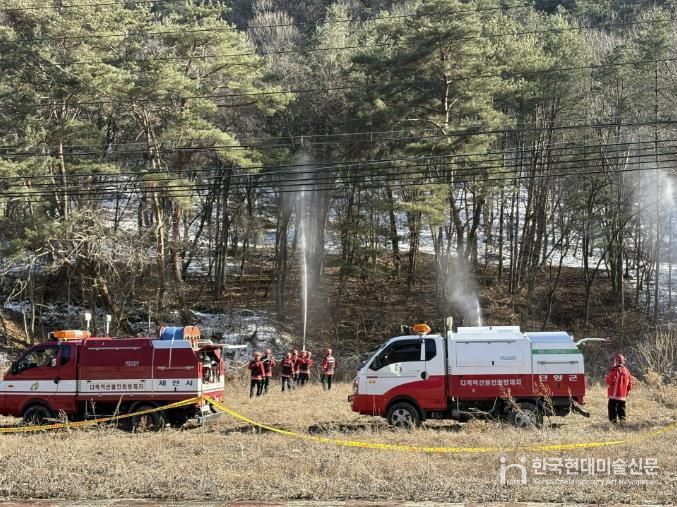 한국현대미술신문 신정은 기자 | 제천시는 지난달 25일 단양군 단양읍 별곡리 일대에서 산불 발생에 대비한 산불 대응 합동 모의훈련에 참여했다.