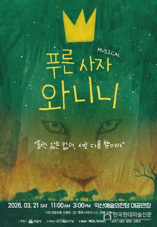 한국현대미술신문 기자 | 익산시가 온 가족이 함께 즐길 수 있는 창작뮤지컬 '푸른 사자 와니니'를 무대에 올린다.
