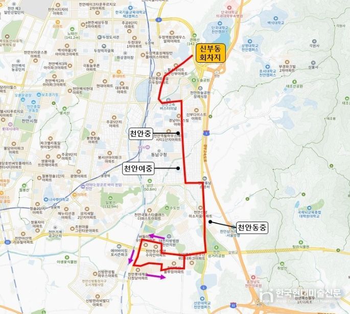 시는 등·하교 시간을 고려해 배차를 확정했으며, 천안동중·천안여중·천안중학교 등 주요 학교 인근의 천안대로와 충절로를 경유하도록 설계해 학생들의 접근성을 높였다.