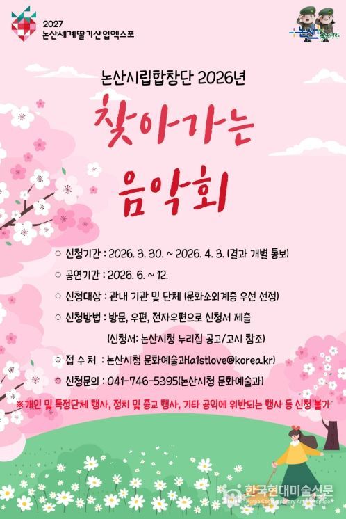 한국현대미술신문 신정은 기자 | 논산시가 ‘논산시립합창단 2026년 찾아가는 음악회’를 운영한다.
