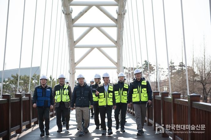 김재보 이사장을 비롯한 합동 점검반은 사업장 내 시민들의 이용이 잦고 해빙기 취약 시설로 꼽히는 구역들을 비롯하여 ▲교량 구조 이상 여부 ▲야외 운동기구 상태 점검 ▲지반 침하·붕괴 우려 옹벽 및 경사면을 집중적으로 점검했다.