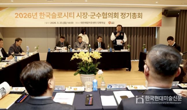 한국현대미술신문 신정은 기자 | 태안군이 지난 23일 태안군해양치유센터에서 한국 슬로시티 회원 시·군 지자체장 및 관계 공무원, 한국슬로시티본부 관계자 등 60여 명이 참석한 가운데 ‘2026년 한국슬로시티 시장·군수협의회 정기총회’를 개최했다.