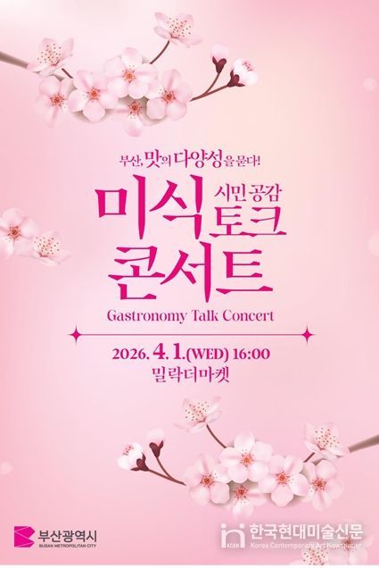 한국현대미술신문 정소영 기자 | 부산시는 오늘(1일) 오후 4시 밀락더마켓에서 '부산, 맛의 다양성을 묻다!' 시민 공감미식 토크 콘서트를 개최해 2026년 미식관광 정책 방향을 시민과 공유한다고 밝혔다.