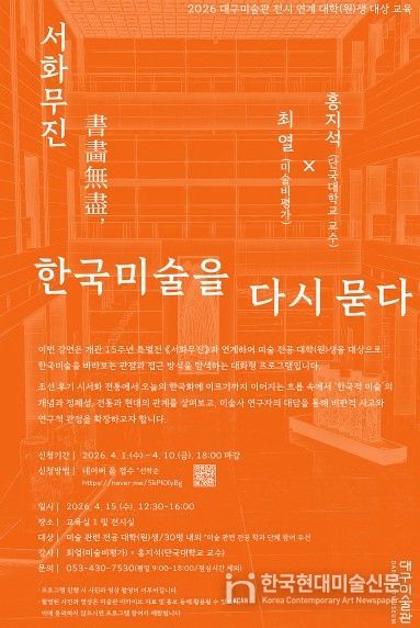 대구미술관 관계자는 “이번 프로그램은 전시를 기반으로 한국미술을 바라보는 다양한 관점과 해석을 공유하는 자리로, 전공자들을 위한 심화 교육을 통해 한국미술을 바라보는 시각을 확장하는 계기가 될 것으로 기대한다”고 말했다.
