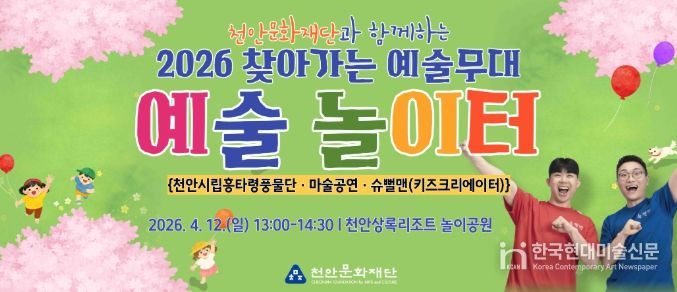 한국현대미술신문 신정은 기자 | 천안문화재단은 오는 12일 천안상록리조트 놀이공원 일원에서 ‘예술놀이터’를 운영한다고 7일 밝혔다.