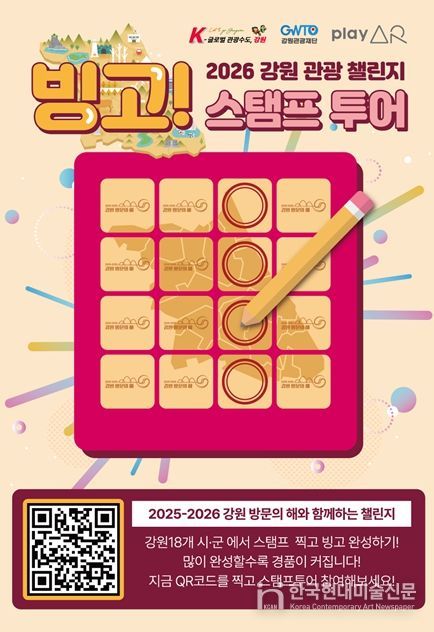 한국현대미술신문 원진 기자 | 강원관광재단은 2026년 '강원 방문의 해' 사업의 일환으로 도내 전역을 아우르는 참여형 관광 프로그램‘강원 관광 빙고 챌린지’를 4월 9일부터 본격 운영한다고 밝혔다.
