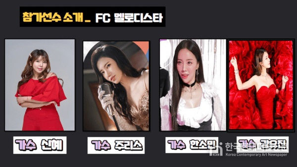 여자팀 FC 멜로디스타는 주장 신혜를 중심으로 슬기, 주리스, 한소민, 제이린, 강유진, 안소예, 박은정, 신미경, 김유나 등이 팀을 구성해 활약할 예정이다. 이들은 열정적인 플레이로 팬들에게 색다른 볼거리를 제공할 준비를 하고 있다.