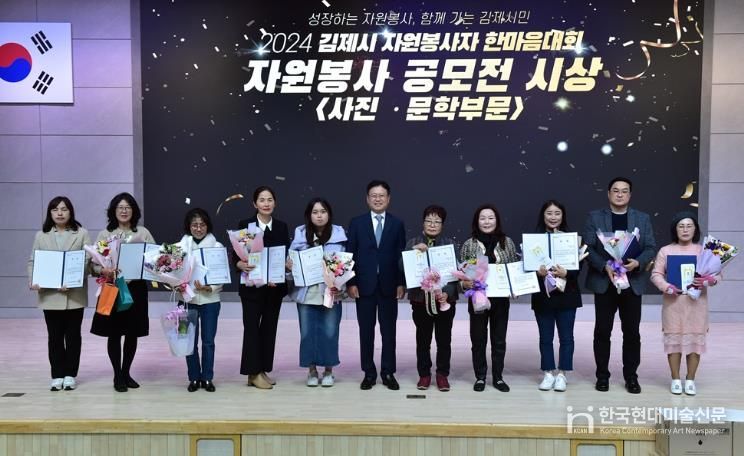 한국현대미술신문 강경숙 기자 | 김제시는 김제시자원봉사센터가 6일 시청 대강당에서 500여 명의 자원봉사자와 내빈이 참석한 가운데 “2024 김제시자원봉사자 한마음대회”를 개최했다고 밝혔다.
