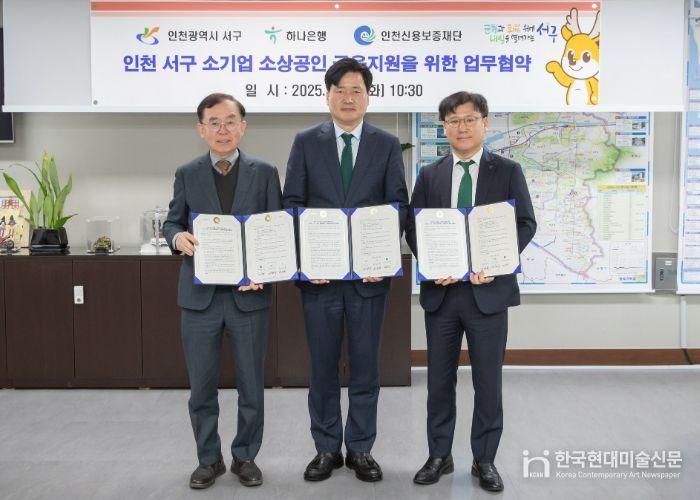 한국현대미술신문 박재남 기자 | 인천 서구는 지난 18일 하나은행·인천신용보증재단과 함께 45억원 규모의 「소기업·소상공인을 위한 금융지원 업무 협약」을 체결했다고 19일 밝혔다.