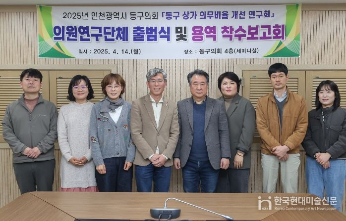 한국현대미술신문 박재남 기자 | 인천 동구의회 의원연구단체 ‘동구 상가 의무비율 개선 연구회’는 지난 14일 동구의회 세미나실에서 출범식을 개최했다고 밝혔다.