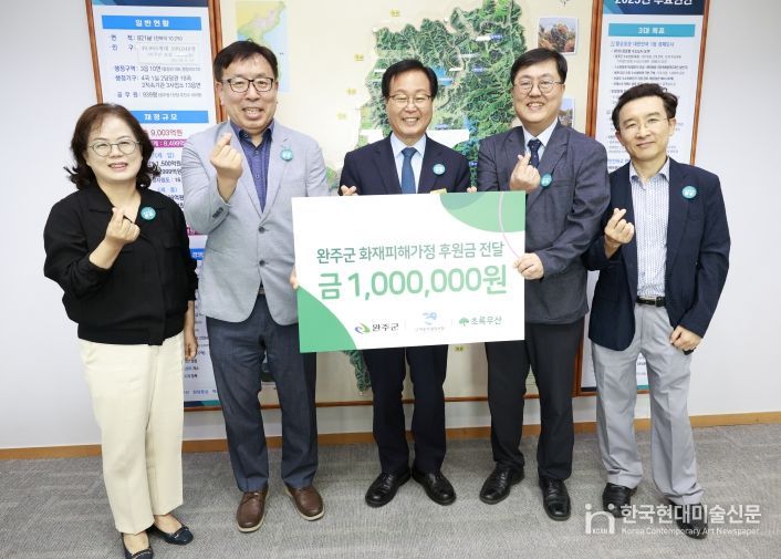 한국현대미술신문 기자 | (사)이웃사랑의사회(이사장 이상권)가 12일 완주군을 찾아 지난 3월 화재로 주택이 전소된 완주군 소재 다문화가정을 위해 주택신축사업비 100만 원을 전달했다.