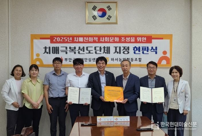한국현대미술신문 기자 | 부안군 치매안심센터는 지난 23일 하서농협을 2025년 치매극복선도단체로 지정하고 업무 협약 및 현판식을 진행했다.