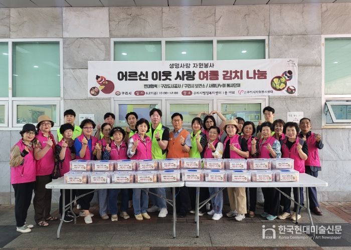 한국현대미술신문 배윤섭 기자 | 사단법인 구리시자원봉사센터는 6월 27일 구리시행정복지센터 1층 야외에서 ‘생명사랑 자원봉사 - 이웃사랑 여름 김치 담가 전달’ 활동을 펼쳤다.