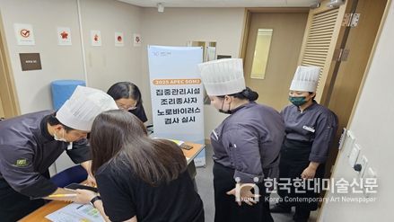 한국현대미술신문 박재남 기자 | 인천광역시는 2025 아시아태평양경제협력체(APEC) 제3차 고위관리회의(SOM3) 개최를 앞두고, 회의 기간(7월 26일부터 8월 15일까지)동안 식음료 안전을 강화하기 위해 7월 17일부터 18일까지 이틀간 조리 종사자 243명을 대상으로 노로바이러스 검사를 실시했다고 밝혔다.